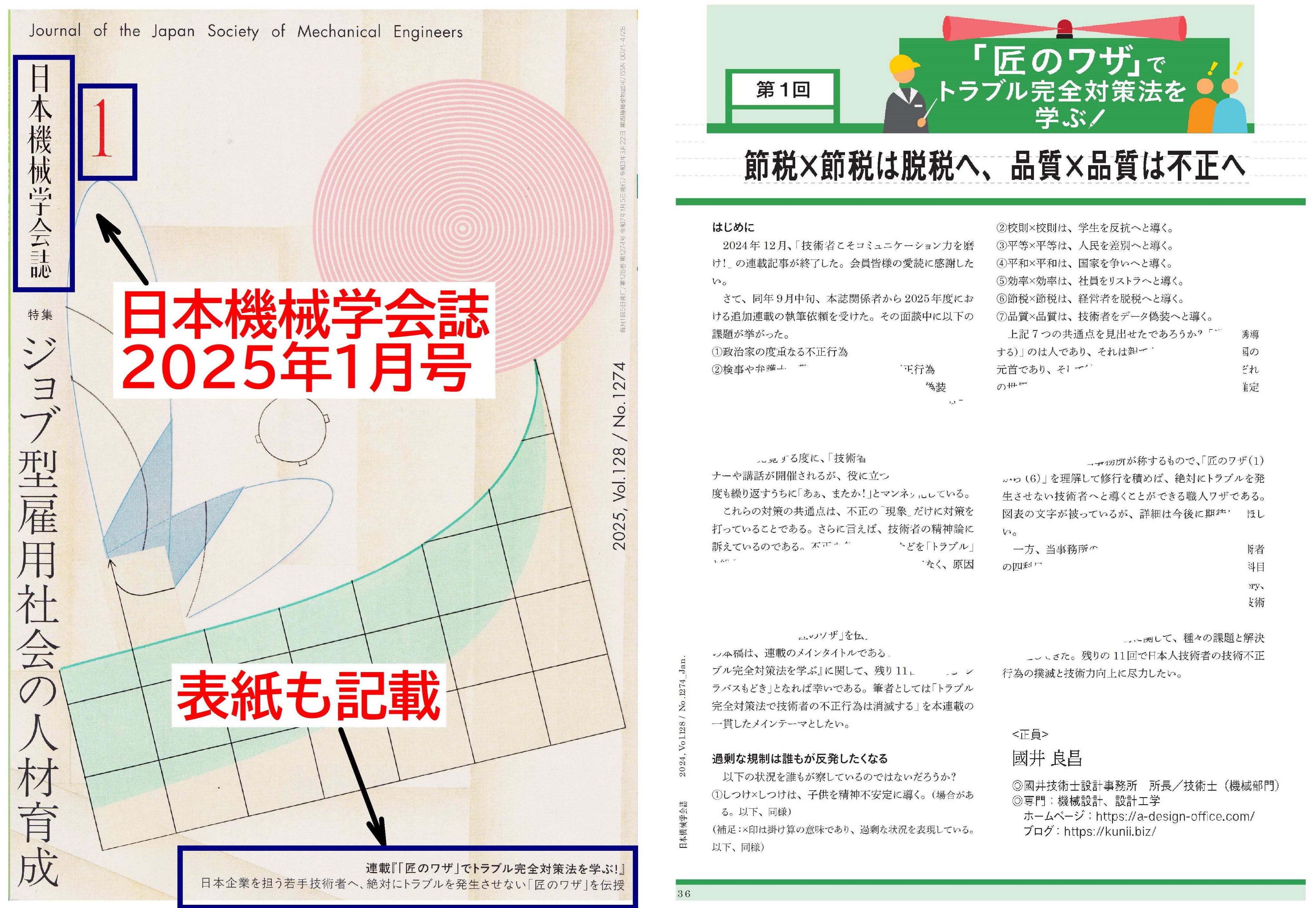 G2:2025年、日本機械学会誌に年間掲載中の「「匠のワザ」でトラブル完全対策法を学ぶ!」