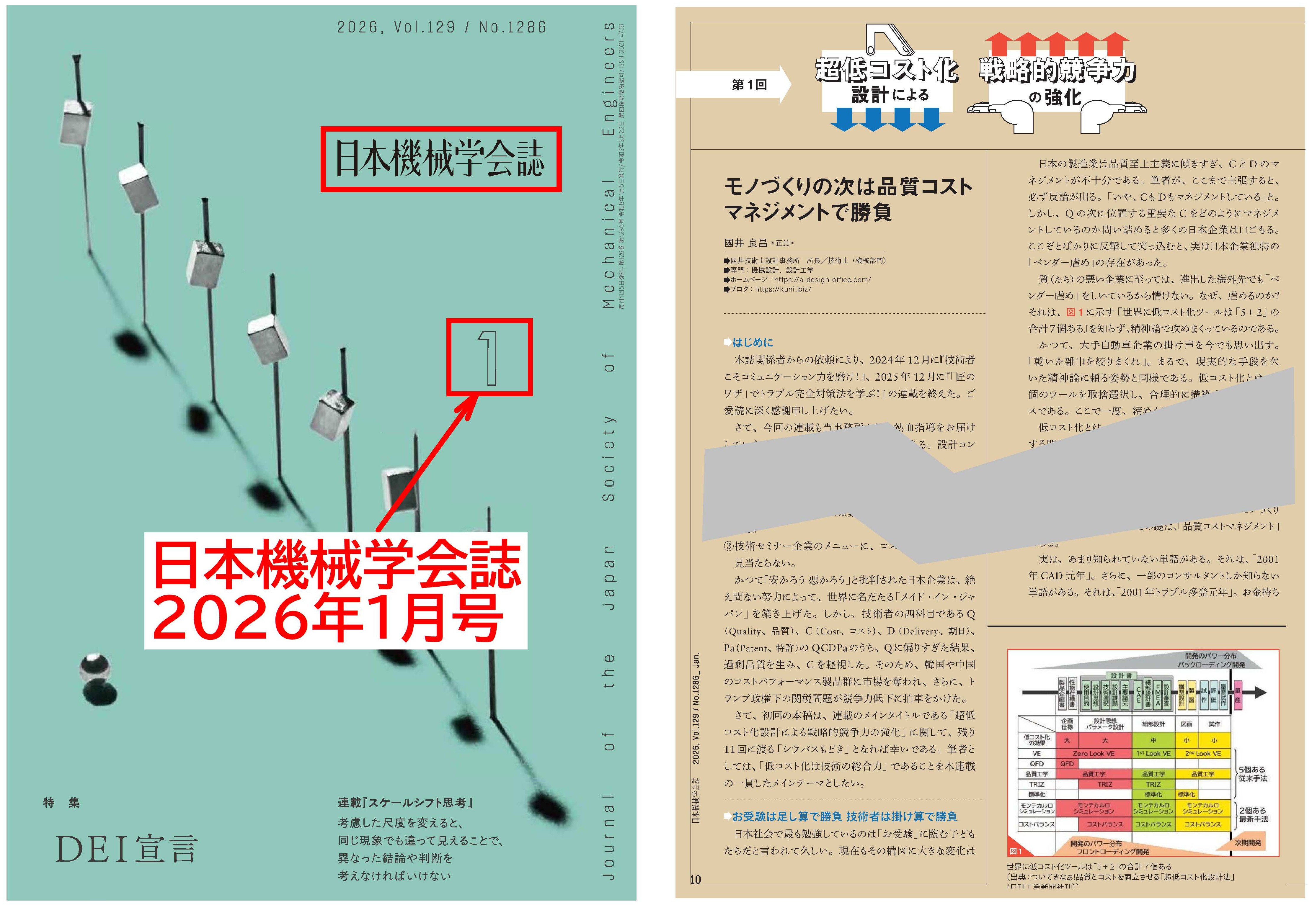 G3:2026年、日本機械学会誌に年間掲載中の「超低コスト化設計による戦略的競争力の強化」